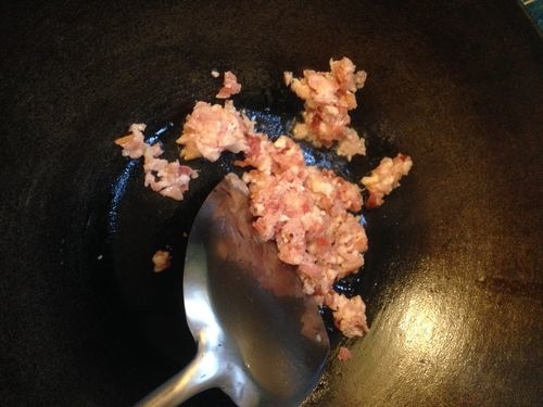 - 燒熱鑊,加一點點油,下煙肉碎炒至看見一點點焦色