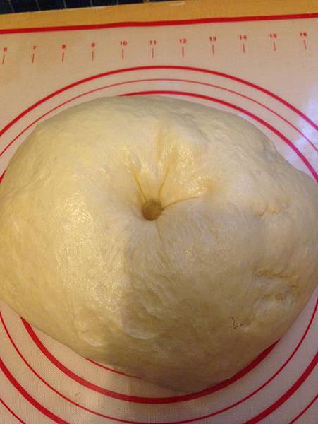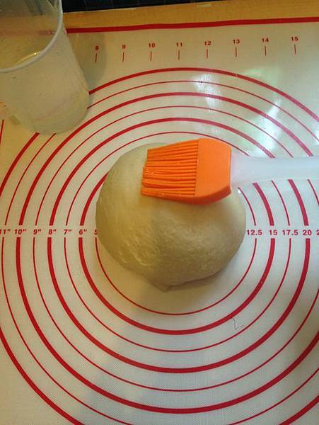 - 搓好的麵糰滾成圓,上面掃上一層水,用大碗蓋上,作第一次發酵 (1小時)
