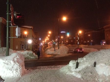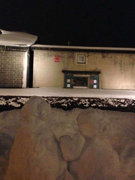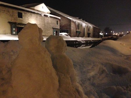 鋪天蓋地都係雪,個天黑齊之後加幾次黃色街燈,仲有開始落雪…