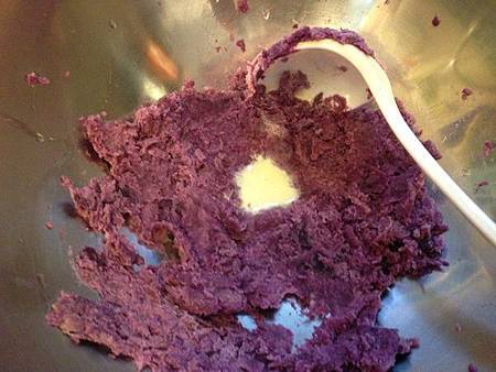 ***也可以將紫薯壓過篩,出來的薯蓉會很幼滑,但因為太麻煩了!老娘就免了***