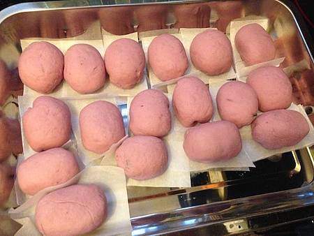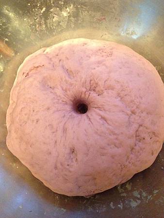 - 把麵團滾圓,放進大碗,上面掃上一層水,蓋上濕布,