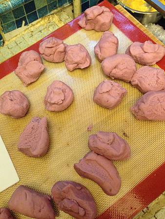 - 麵團搓至乾身後,重覆把手沾濕再搓
