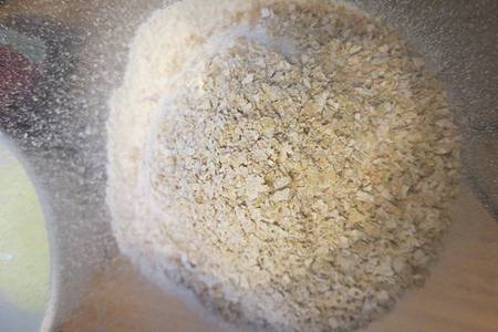 - 把低筋麵粉+全麥麵粉+碎燕麥片過篩