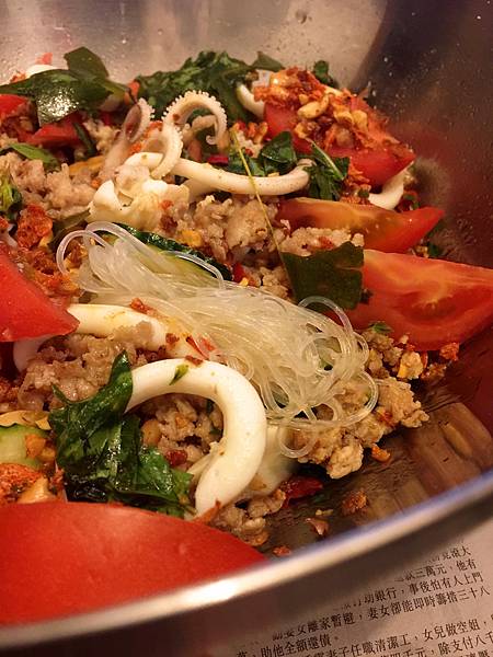 - 煮沸水,放入粉絲燙熟(大約10秒),撈起隔水後放入大碗