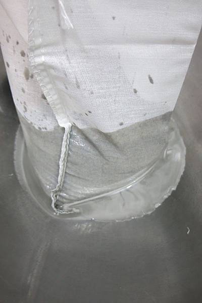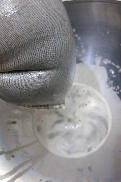 - 將芝麻漿倒入隔渣袋,用力將芝麻漿扭出來 (這個步驟我覺得是最花工夫的)