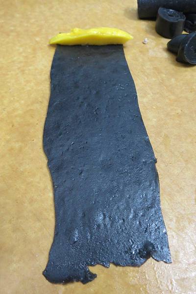 - 老娘習慣將芝麻卷切去頭尾後切好大小,再攤開放好芒果條捲好,用剪刀修一修凸出來的芒果就ok了!這樣比捲好芒果再切容易處理
